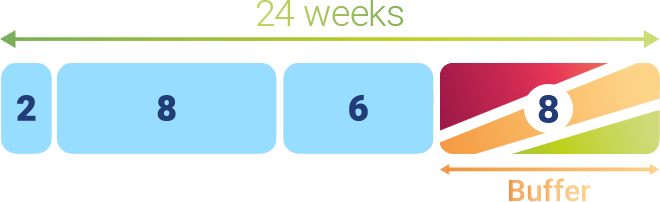 The task durations estimated in the CCPM schedule are "focused" durations, they are ambitious estimates. Besides, resource needs are taken into account to foster synchronisation and avoid wainting times. However, these elements do not yet guarantee compliance with the project deadline.
