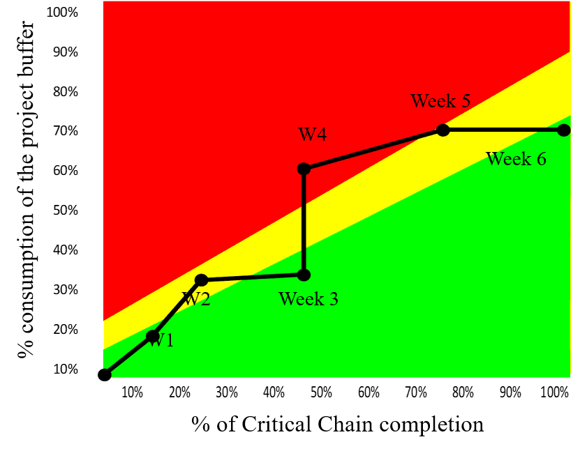 If the delay of a critical task consumes some project buffer, a head start on a critical task can restore a part of it: it is possible to regain some buffer. The project manager must therefore focus on the Critical Chain and follow the progress of the project through the consumption of the project buffer.